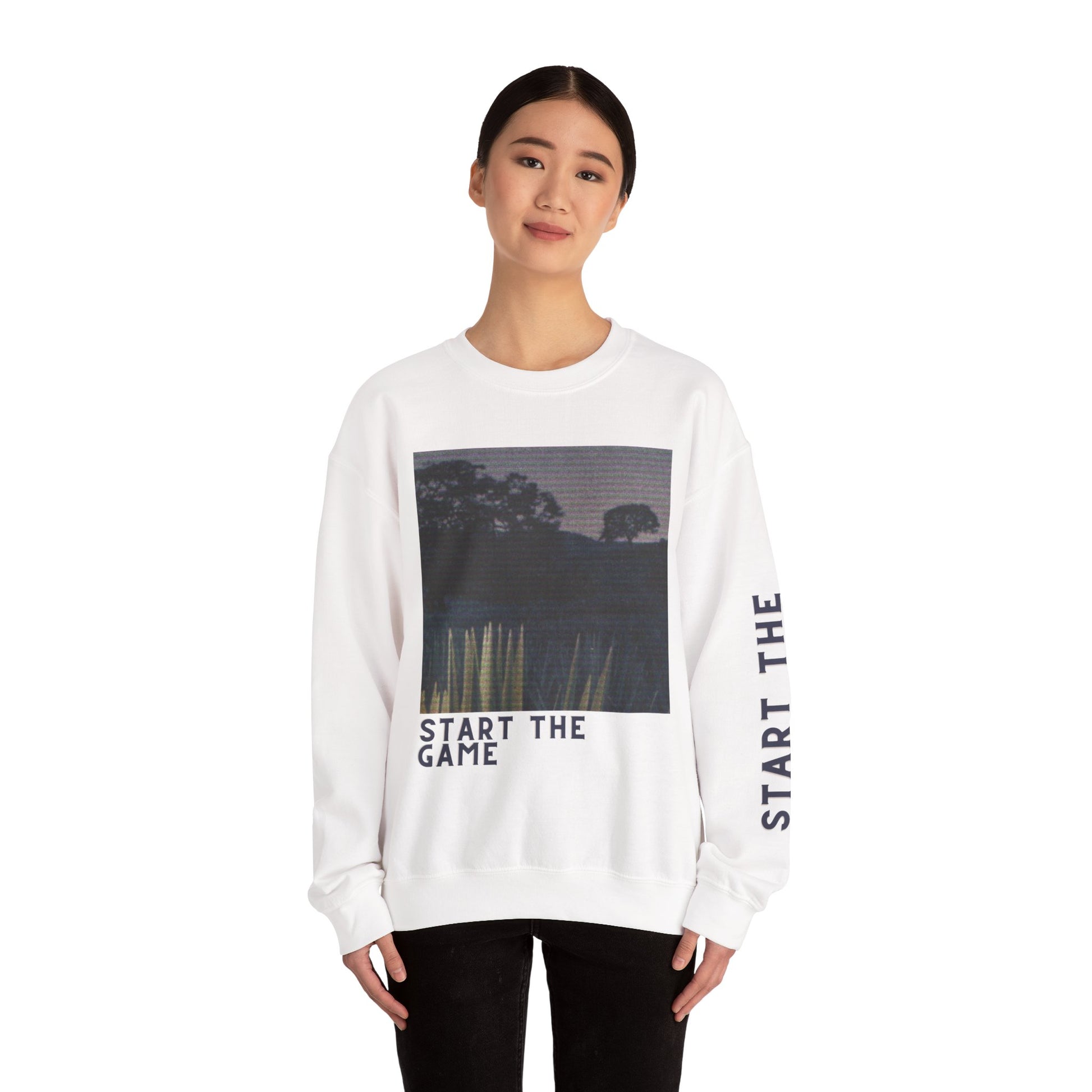 Unisex Crewneck Sweatshirt - Start The Game Design, Cozy Apparel for Gamers, Casual Wear